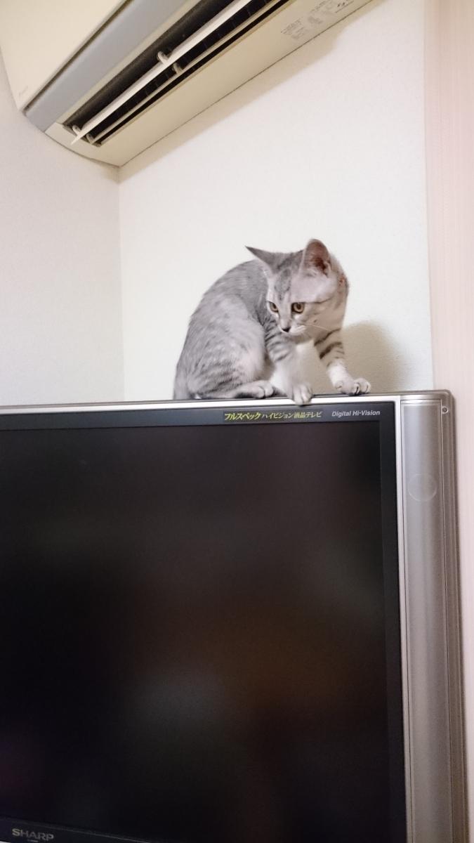 ん?とそれに気づいた瞬間、テレビの上にあんちゃんが裏からガガガっと上がってきました!