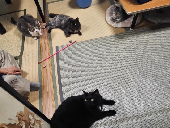 皆で父と猫じゃらしをしていて、休憩中の写真です。ルナは見物です(笑)