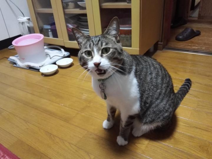 でも、普段は元気で食欲もあります。ごはんちょうだいと言っている写真です。