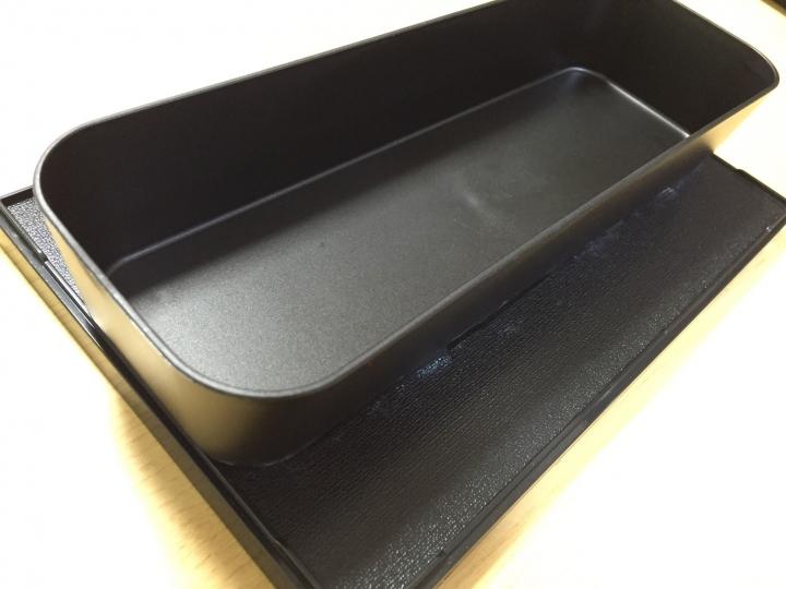 和風な渋い黒いトレイをそのまま使ってもいいのですが、ビニール製ランチマットをカッターで切り、トレイ表面に貼りました。