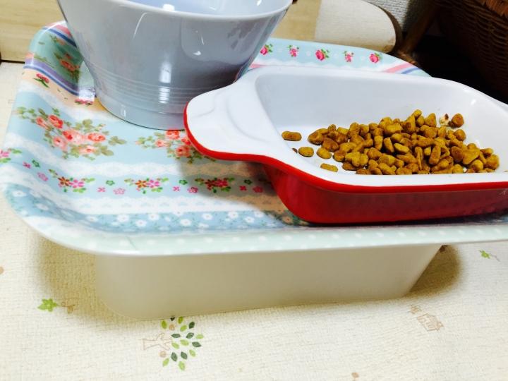 最近作った猫用DIYの中で、なかなかGOODだったのが食器台。