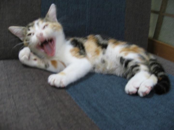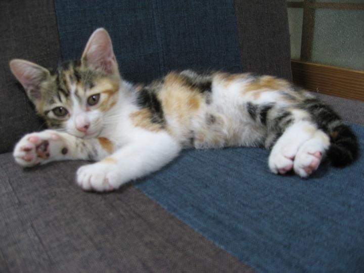 和猫で縞三毛のてまりにはぴったりでしょ。畳の部屋って落ち着くから好きよ♡