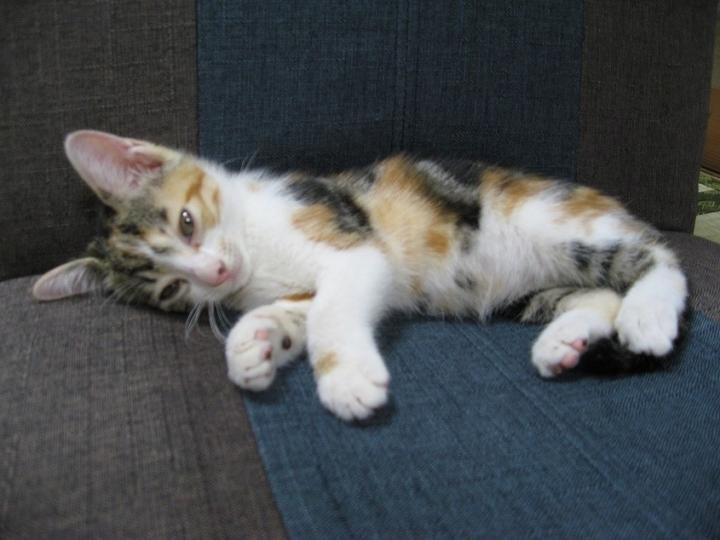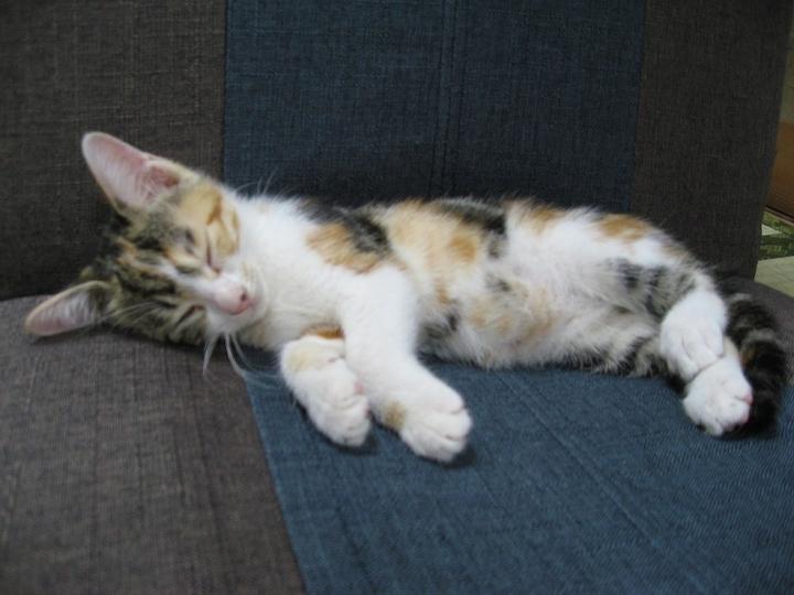 あ~、コレコレ、このかたさが寝転んだときに気持ちいいのよね。さっきまでおもちゃではしゃぎすぎて、疲れちゃった。
