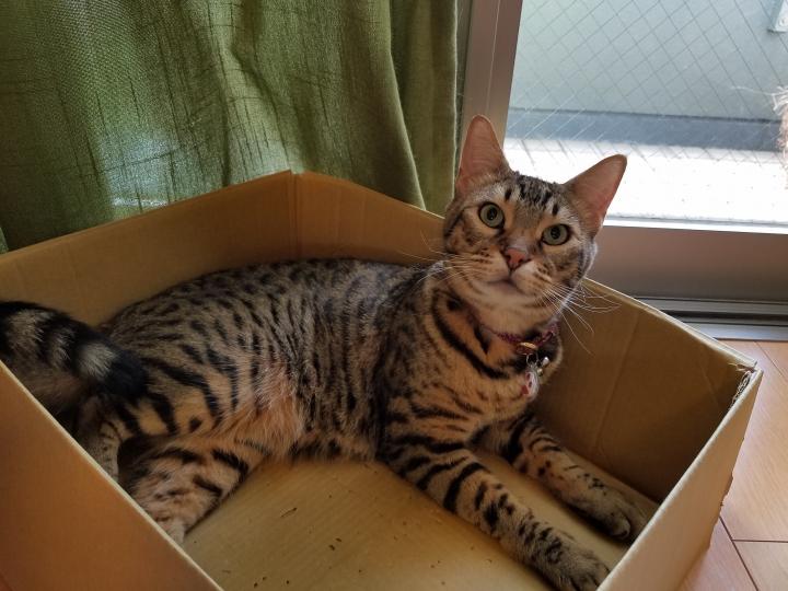 ニコちゃんは、最近お気に入りのダンボールで寝る気満々😪💤💤
