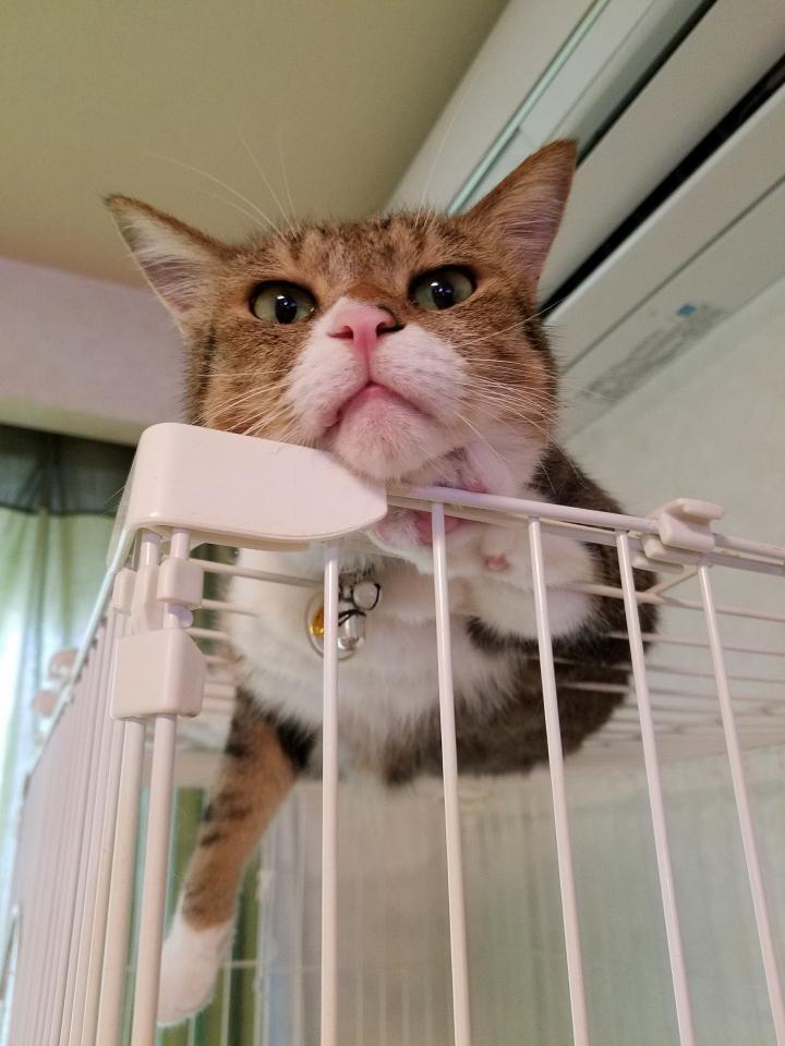 サクちゃんはケージの上で高見の見物😄→ケージによじ登るのが大好きです。