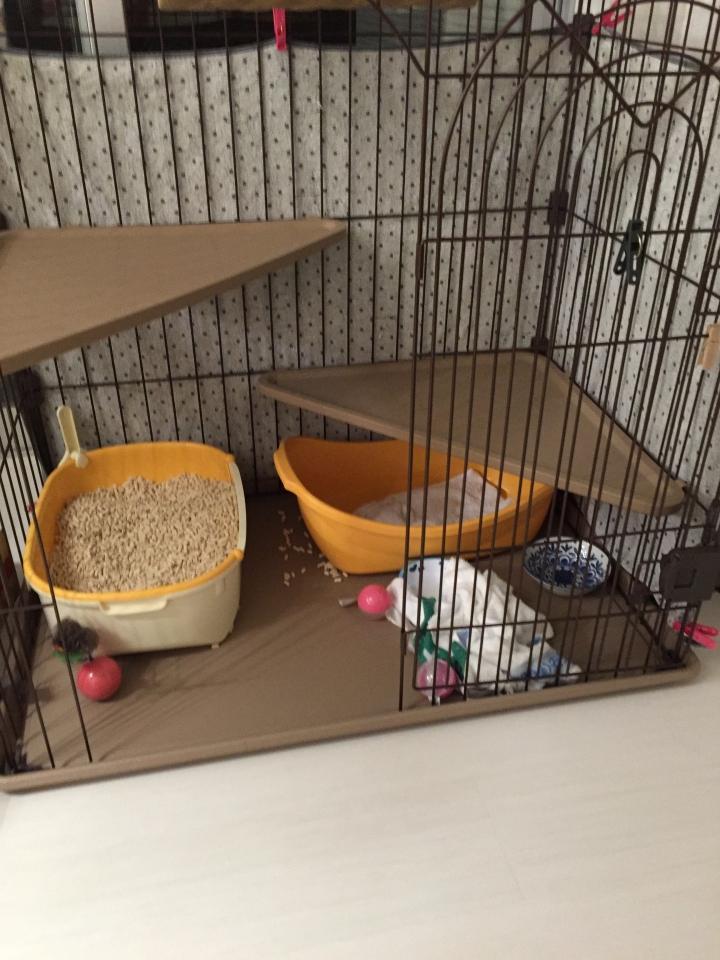 砂を撒き散らして、お水のお皿ひっくり返して、下に敷いてるタオルがぐちゃぐちゃ