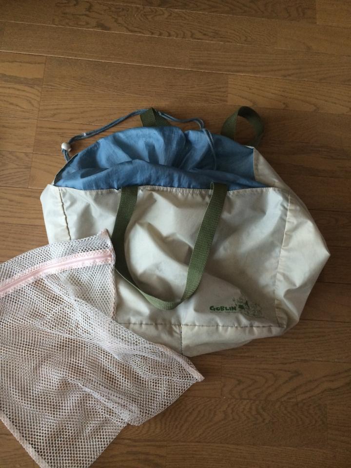 洗濯ネットを破って、買い物バックのスリットから抜け出てました。