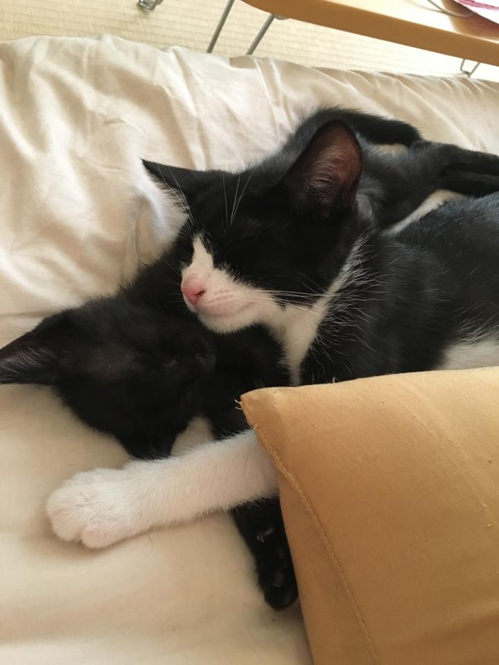 みぃもお転婆ぶりが凄い(>_<)でも寝る時は必ず私の所に来て寝ます(≧∇≦)私が何かしてるとととに甘えて寝てます♬