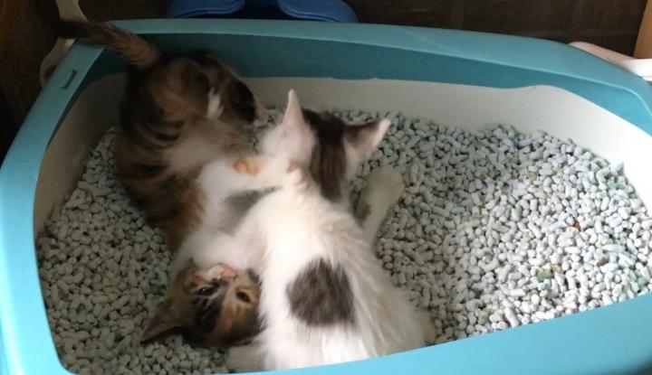 だけど、何も猫トイレの中でバトルしなくてもいいのにね〜ψ(`∇´)ψ