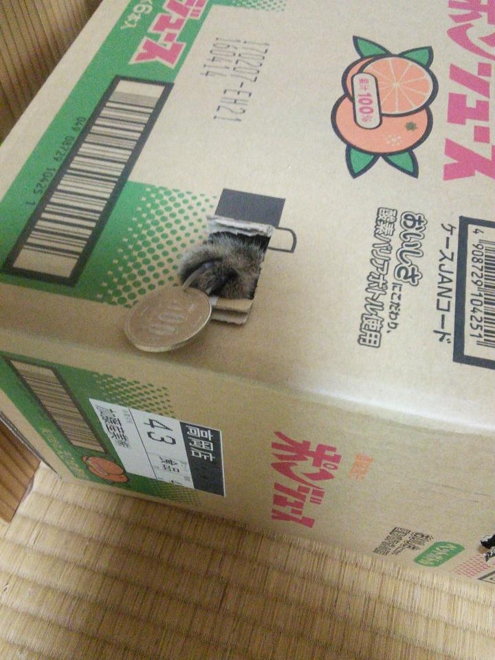 箱の中から猫の手が出てきてコインを落とす貯金箱ってありましたよね~