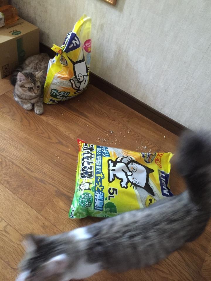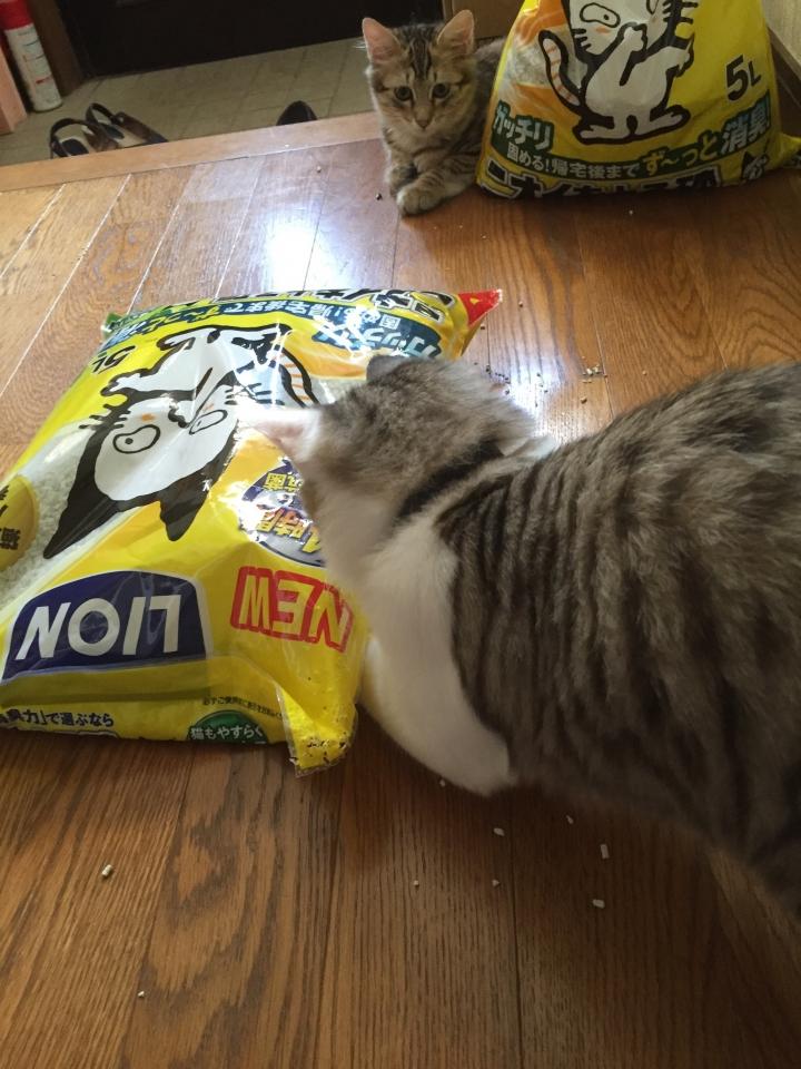 袋に穴開けちゃダメだよ、もう端っこもカジカジして(−_−#)まさかこの前のパウチ齧ったの姫ちゃん⁉︎