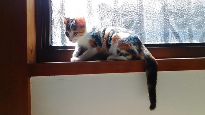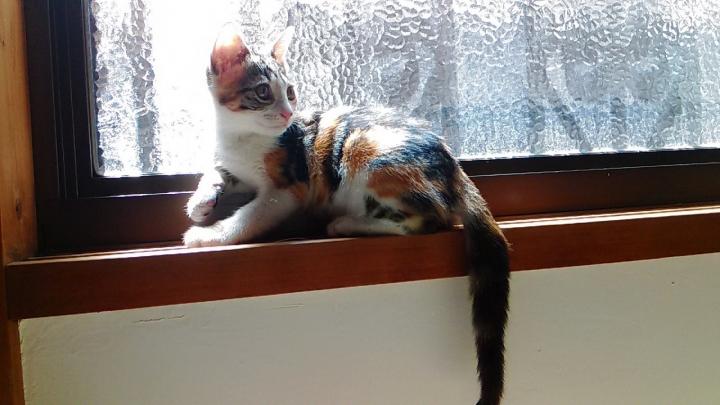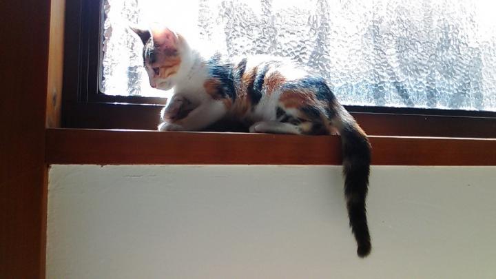 ・・・窓辺にて。お日様にあたるのは気持ちいいニャー。