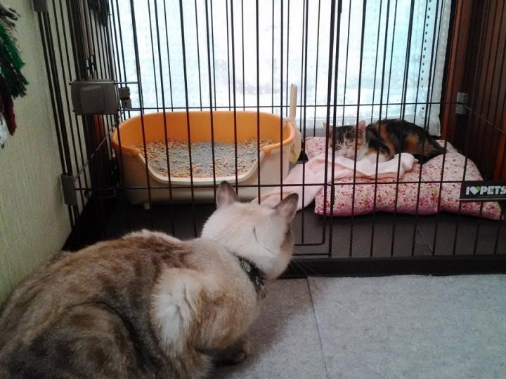 お兄ニャンはずうっとケージ前にいてくれたよ。