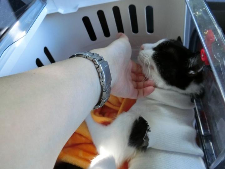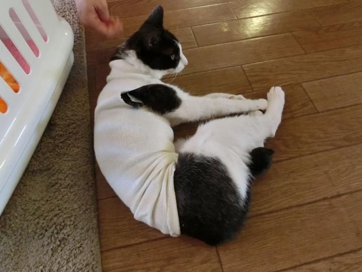 違和感があるのかな。でも鳴いて訴えたりしないのです。