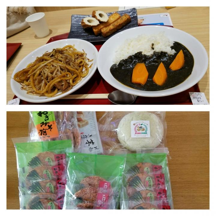 写真上は『大村あま辛黒カレー』(長崎)と『なみえ焼きそば』(福島)、『豆腐ちくわ』(鳥取)です。