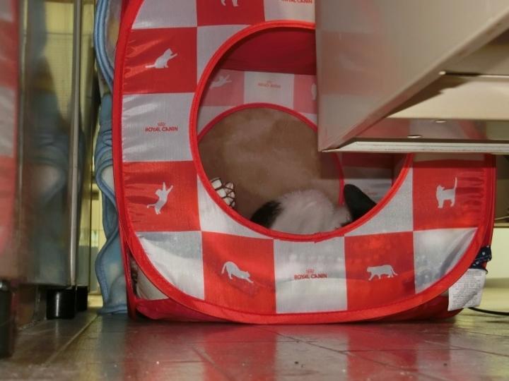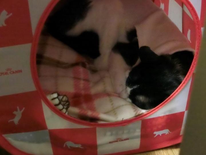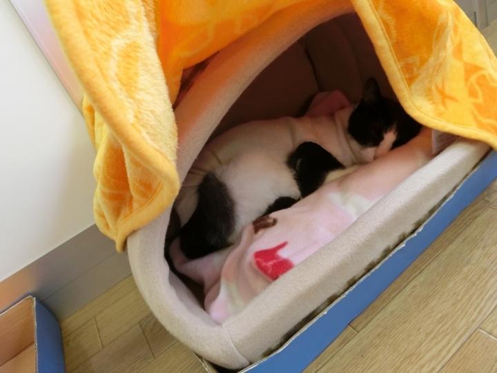 9/10 日中から退社時まで、机の間の人が触れられない寝床で爆睡。