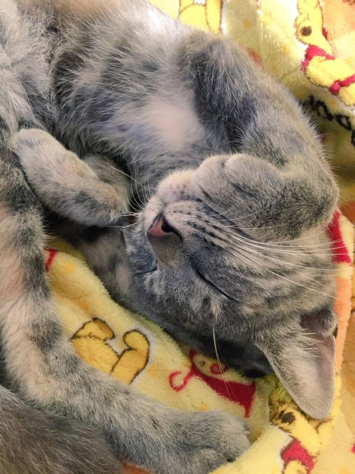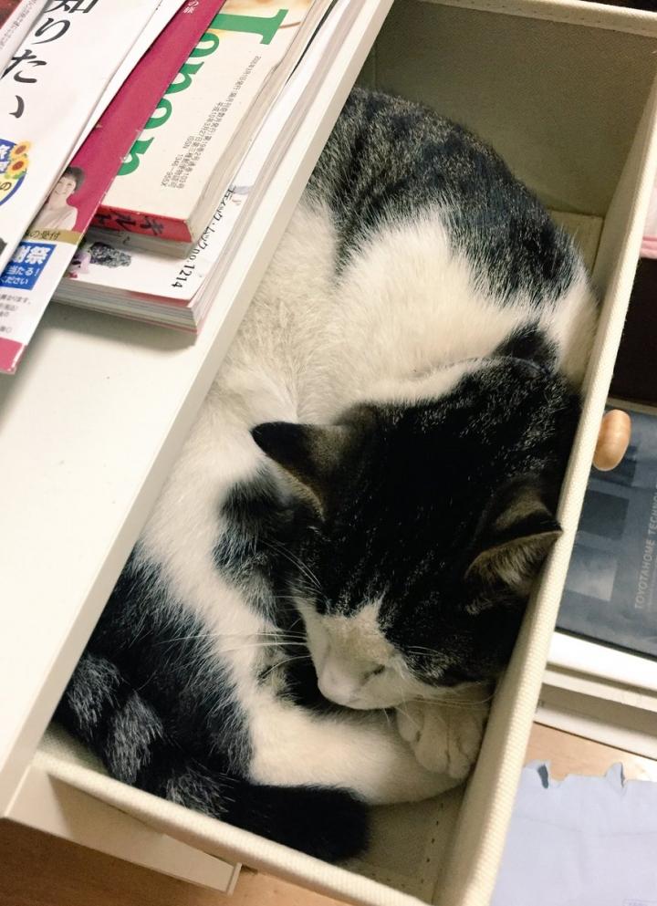 棚のなかでス(˘ω˘)スヤァ…な みーこ氏。後でわかったのですが弟が入れたそう。そしてそのまま(˘ω˘)スヤァ