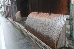 でも後ろに写ってる板は効果ありました。ただ立て掛けてるだけだけど、登れないらしい。京町屋でみかけるコレ↓と同じですね。