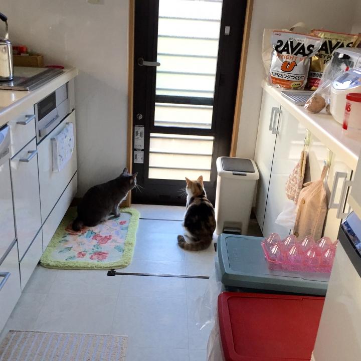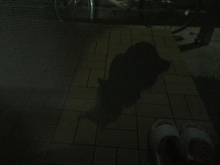 うちの猫さん2人がまた変わった鳴き声をしていると思ったらテラスに黒い影?(・_・;