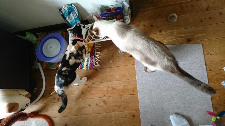 大福さんはやはり隠密…でもちゅーるは食べたかったらしくしぶしぶ出て来て食べてました。