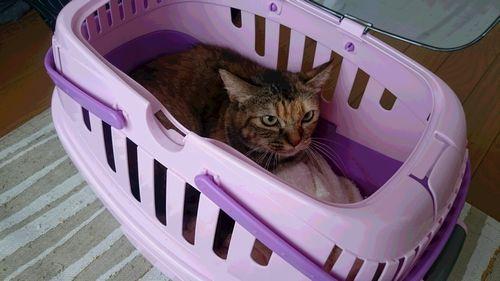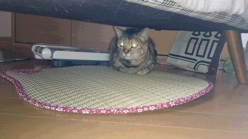 お部屋に着いたキジママちゃん。ちょっとビクビク。