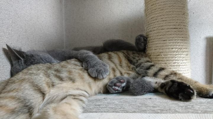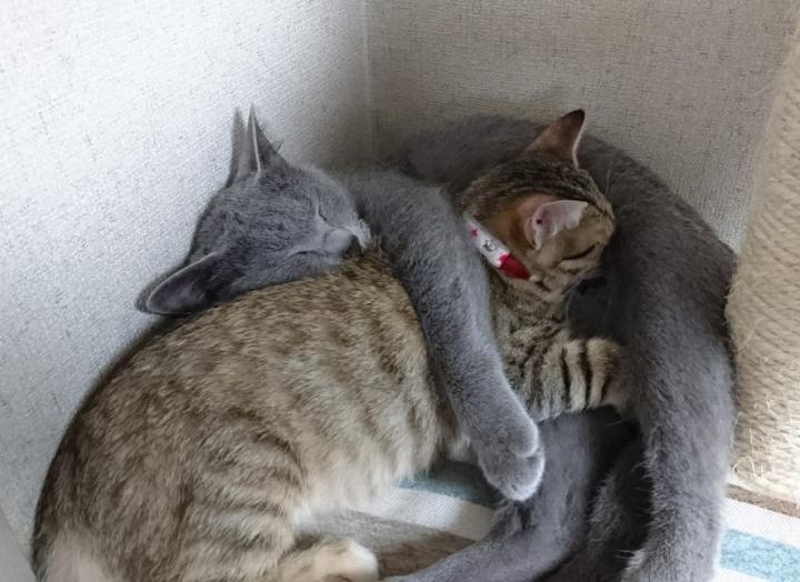 でも、2週間位前から急速接近。ななはモモのおなかに顔を埋め、モモはお腹をさらけ出しお乳がのみやすい