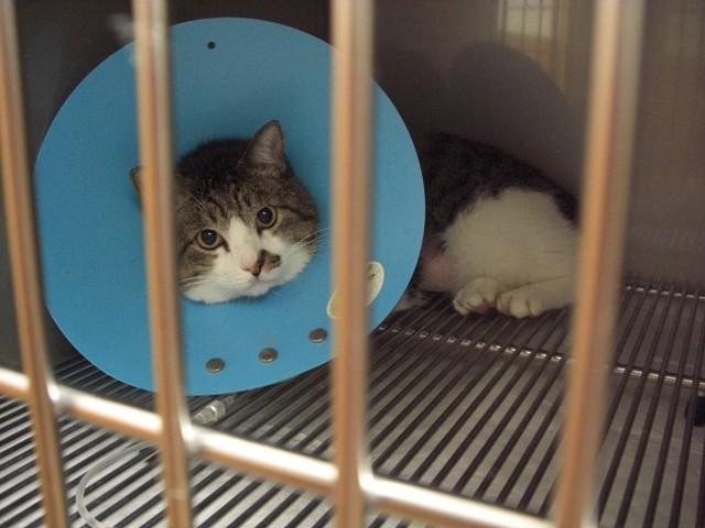 エリザベスカラーを付けたボスと面会。麻酔がまだ効いているのかフラフラ(/_;)