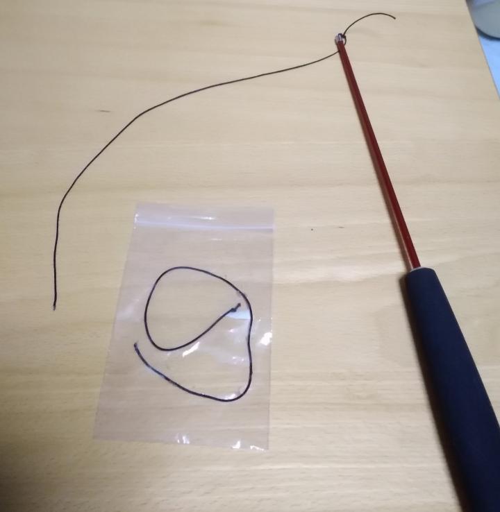 17時半 病院へ到着。残りのじゃらしのヒモも持参(飲んだ長さは20~30cmぐらいと予想)
