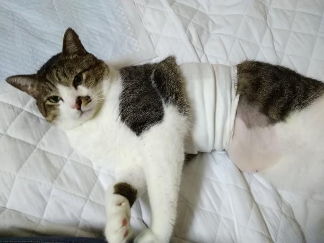 カラーはせずにお腹に粘着包帯を巻いた状態でOKとのこと