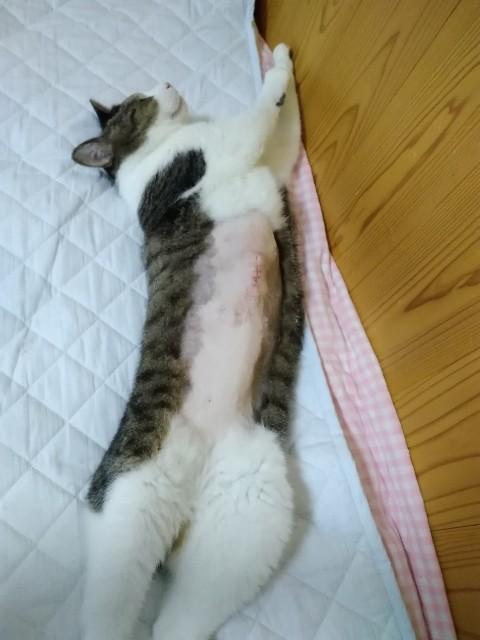 傷が塞がった一部を抜糸。包帯はもう要らないとのこと