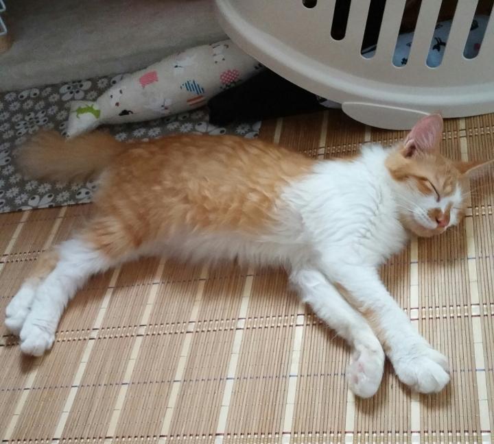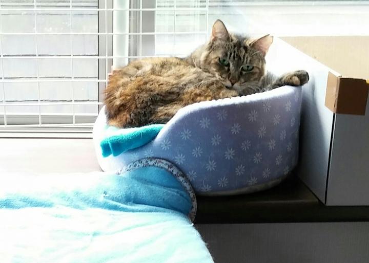 でも最近よく入ってるから、寝心地はいいのかな?獣医さんに毛並みが良いって褒められたんだよね〜💕私触れないから、自分でせっせと整えてるんだなぁ。世唯ちゃんの女子力高し…。