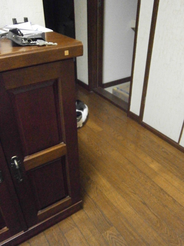 電気にビビってこの位置なんですが、暗がりの中ではもっと近くにいてくれたようです。