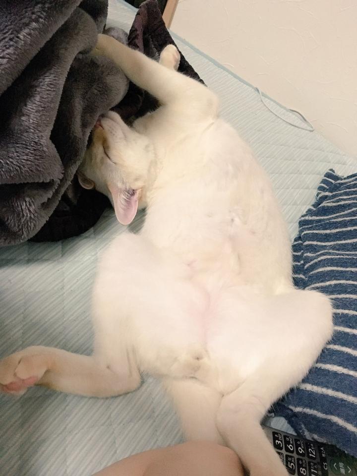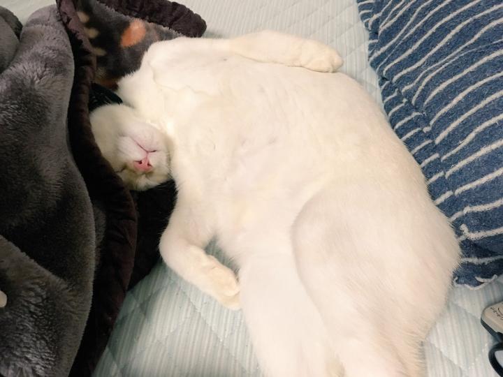 さすがに獣医さんから帰宅したら、車の中で鳴き叫んでたし痛いこと(注射)されたし暴れたしでお疲れ様な様子で、いつもなら部屋中暴れ回ってるんですが朝まで爆睡してました(⊃´-`⊂)イイコ・・・