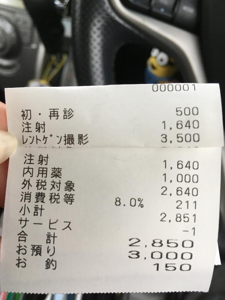ちなみにかかった金額はこれくらいです(午前・午後の2回診察の料金)