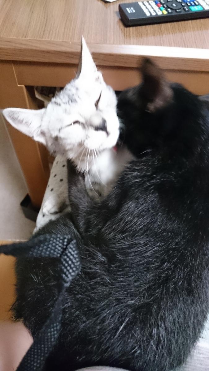 やっと2匹とも落ち着いて私の身体に乗って暖を取ってます(^-^)