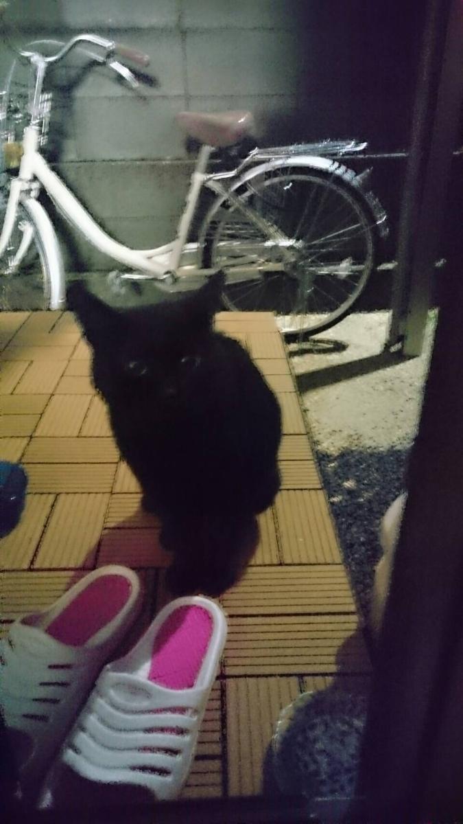 テラスにちょこんと座り、網戸越しにうちのかなを覗いている姿ヽ(´o`;