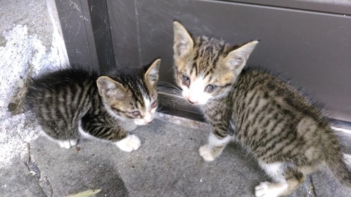 6匹いたはずの子猫。2匹が近所の家の玄関先にいました。残る2匹は行方不明。庭が草ボウボウなので草取りをしながら探していると、西部ガスの検針をしている女性が、「子猫が死にかけてる。どうしたらいいかしら。」と声をかけてきました。