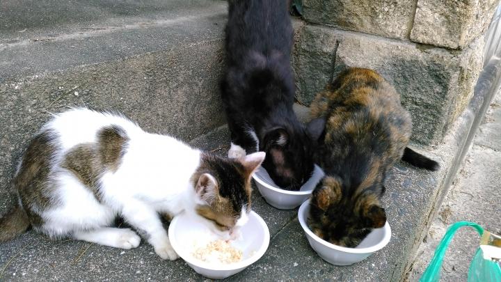今回は、子猫にミルクをあげてくれるように願って、野良猫に餌をあげないというルールを破って母猫に餌をあげました。そしたら、ほかの野良猫も寄ってきて取り合いに。ガツガツ食べる様子を見て不憫だなと思いました。