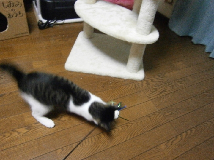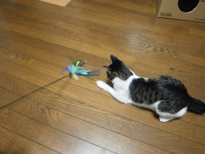 他にもねずみのおもちゃとかあるのですが、コレがダントツにお気に入りです。 コレ出すと目の色が違います^^