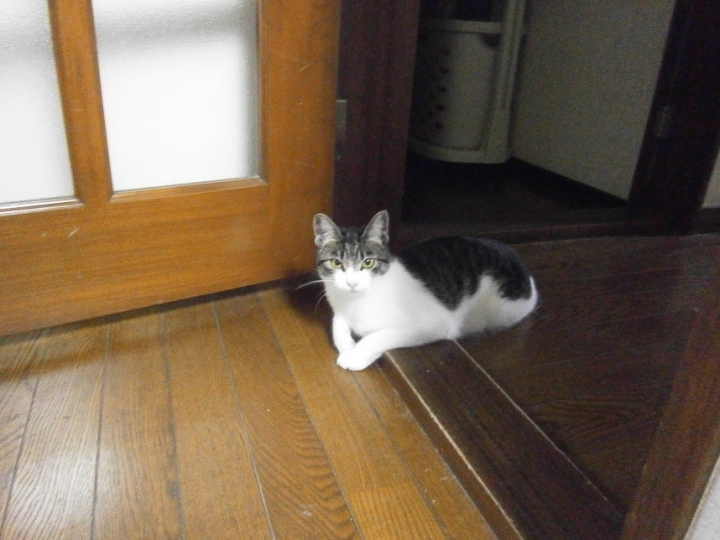 今日はここまでお出迎え^^ 玄関を開けた時に「ニャン!」(おかえりの意・多分・・・)と鳴いてくれるので何か嬉しい♪