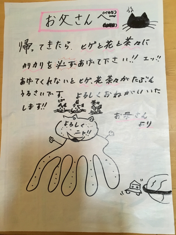 *注 「お母さん」と私を騙ってますが次女が旦那に書いた手紙です