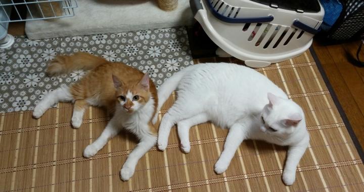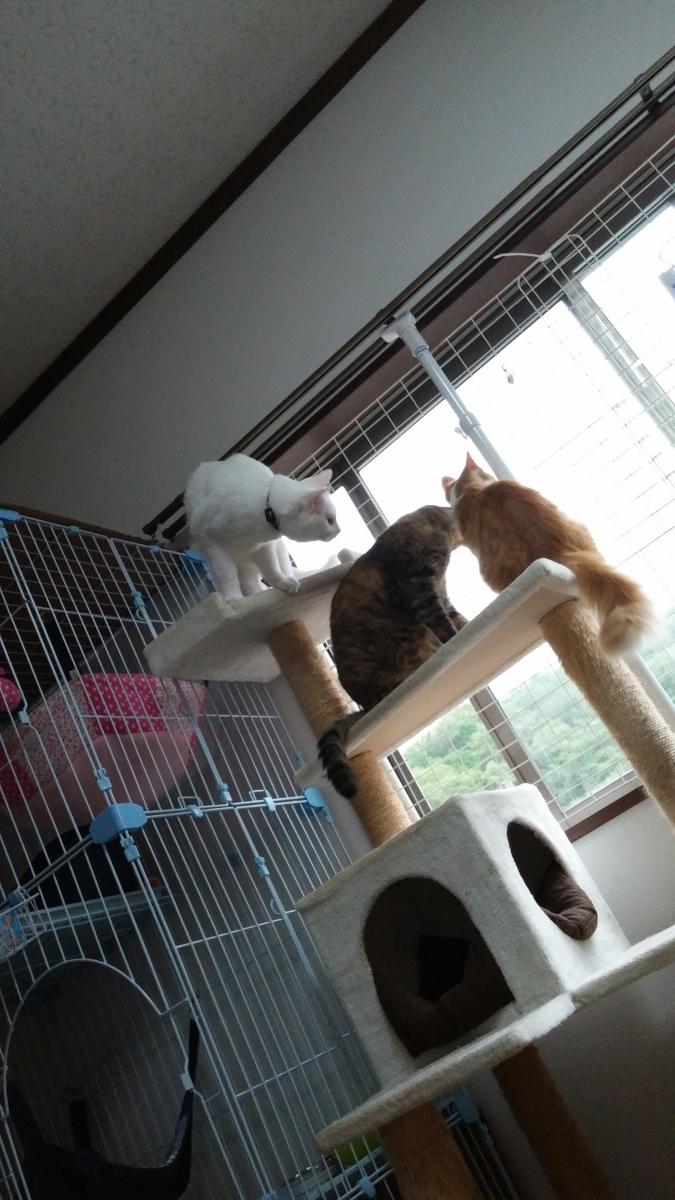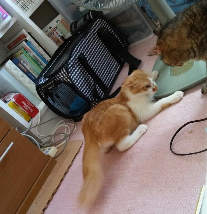 そんなこんなですが、ケージで様子見ているからか微妙な距離を保ちつつ徐々に慣れてきたような……。このままうまく仲良くなりますように。