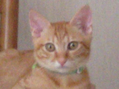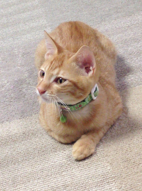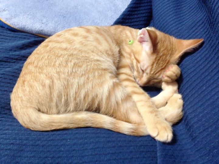 今朝のしお。部屋干しの洗濯物にちょっかいをかけ、逆襲されて凹むの図