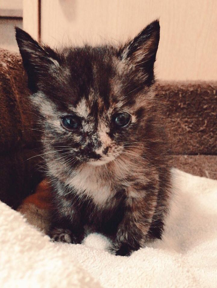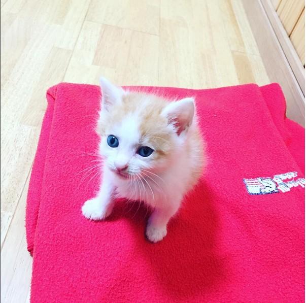 この子は保護した時から比較的軽い症状で、目やにとくしゃみくらいでした。おなかがぽんぽこりんでかわいい(かわいい)うんぴがよくくっついてる。