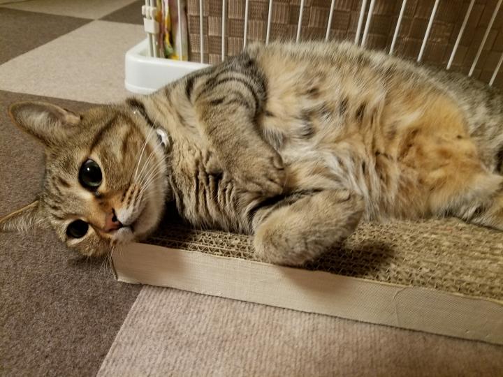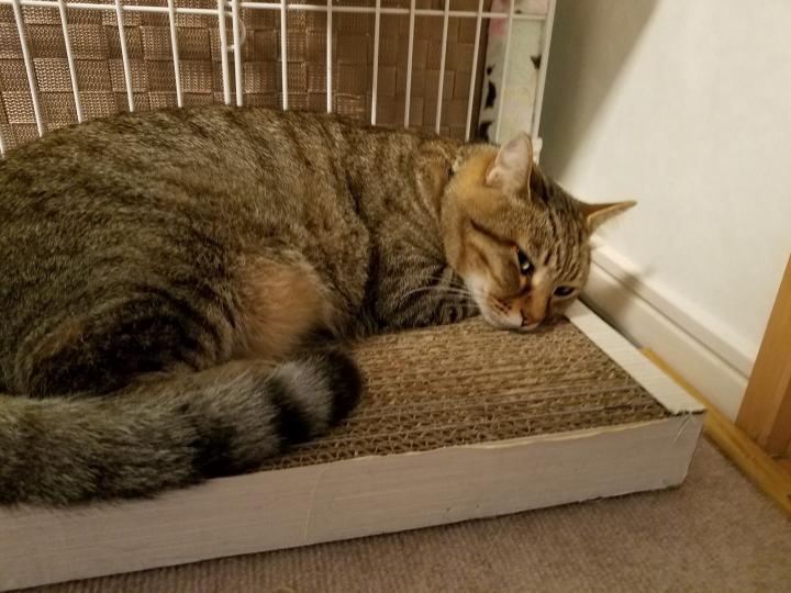 特に何の意味もありませんが、ドラがしょっちゅう爪とぎの上に行くので、ルーティンワークにしようかと思います。