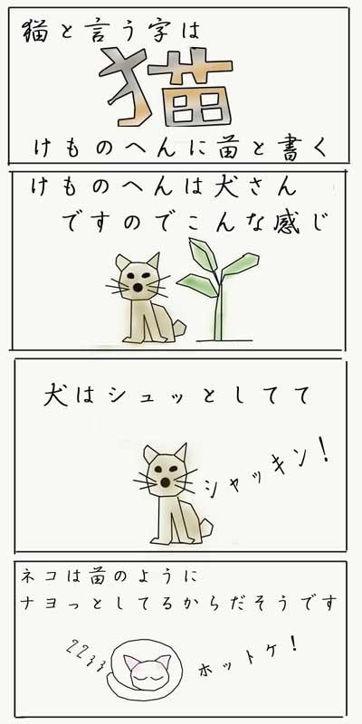 なったっていうのは知ってましたが「猫」が「苗」とは・・知ってるようで知りませんでした。
