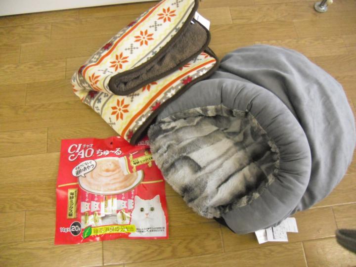 どん!(映ってないけど、ちゅ~るは同じ物があと一つ+下僕にお菓子まで)
