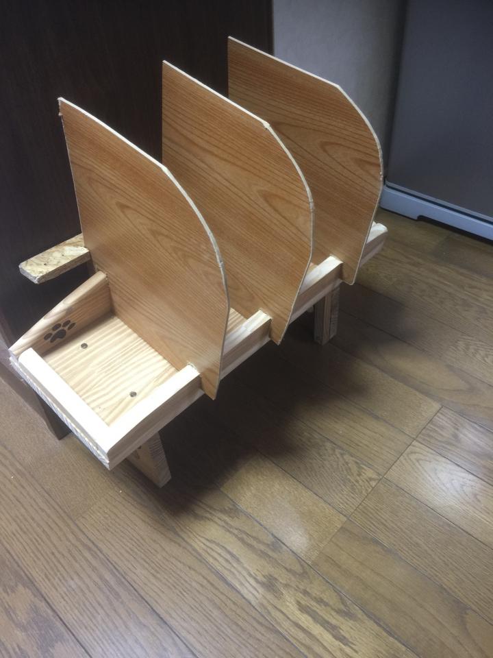 そこで、ニャンズの間に仕切り板を付けてみました