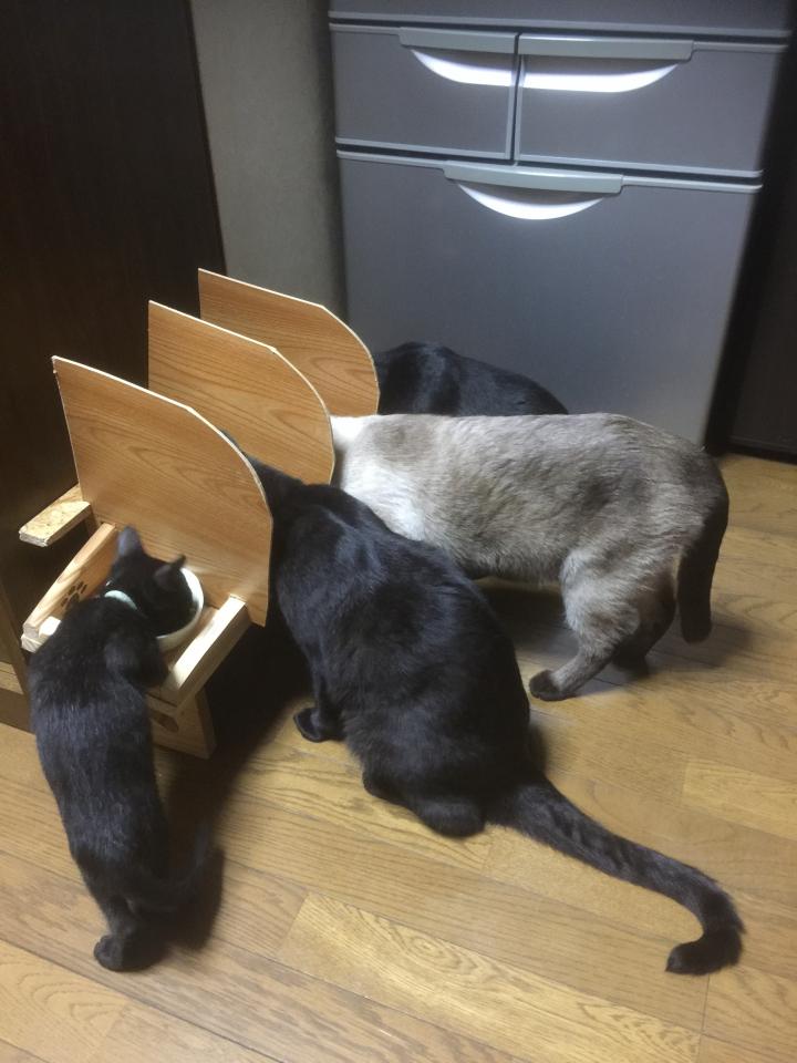 台の上に乗って、他のニャンズのまで食べ散らかすようになり、兄貴達が嫌がって途中で食べるのをやめてしまいます