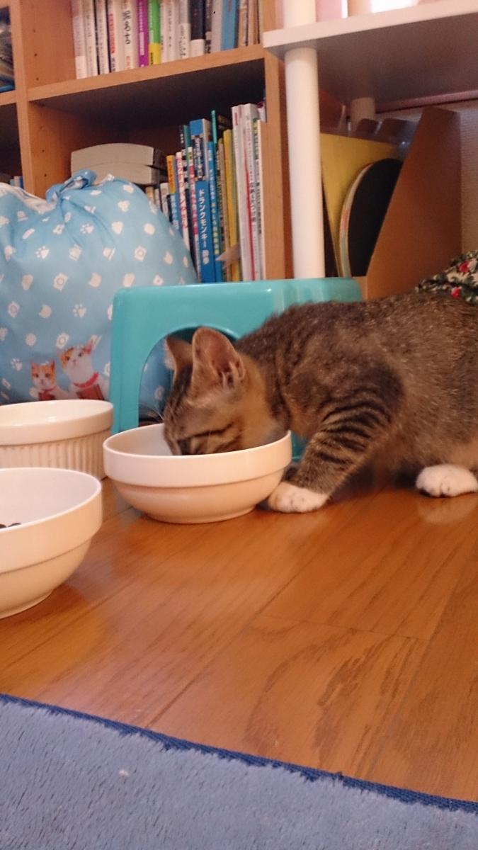人間が寝る時間はいたって静か。どきどき砂を、がっ、がっ、ってかく音とか、カリカリを食べる音がするくらいで、鳴きもせず、騒ぎもせず。あまりの手のかからないタフな子達で、感動。